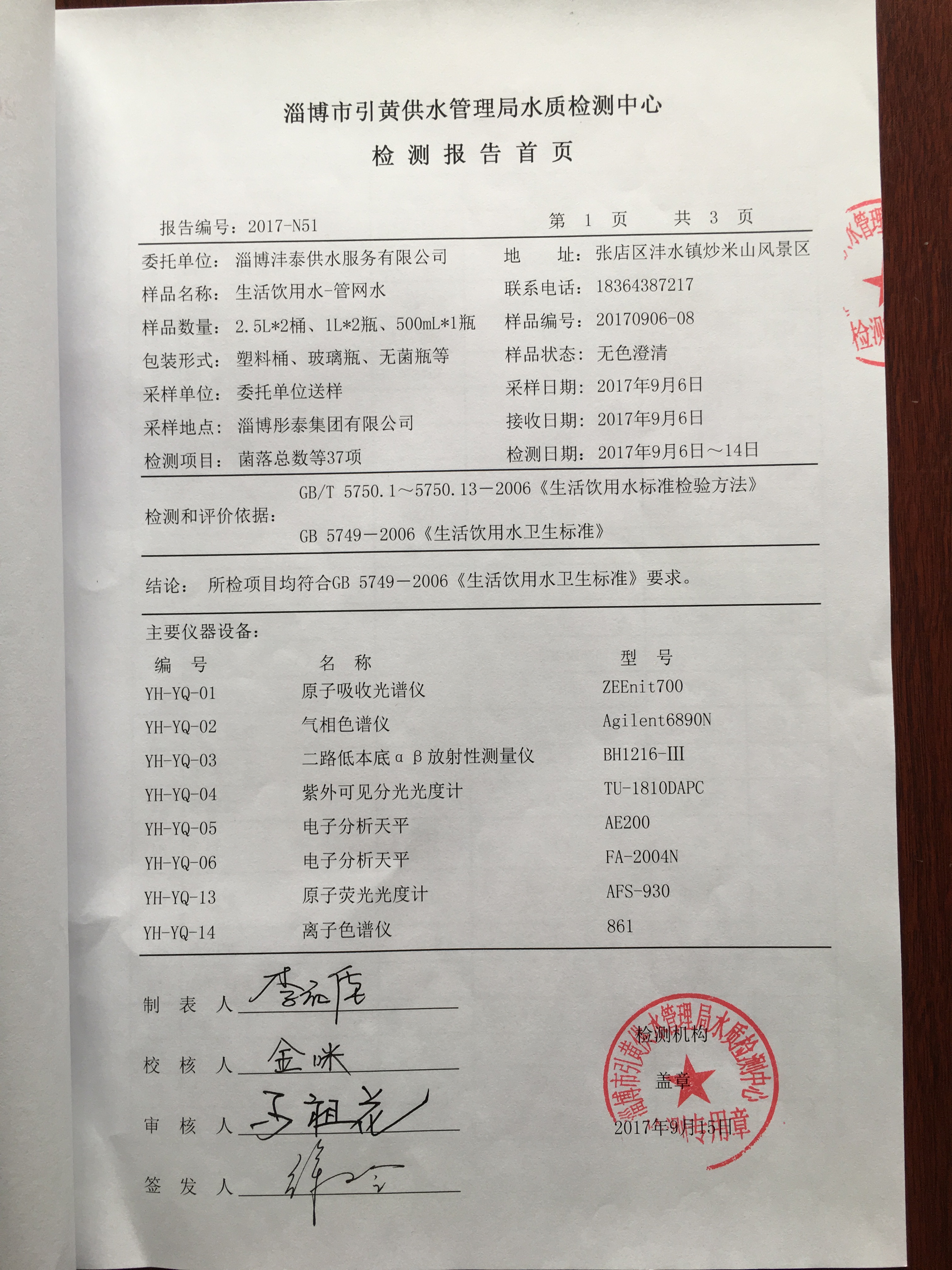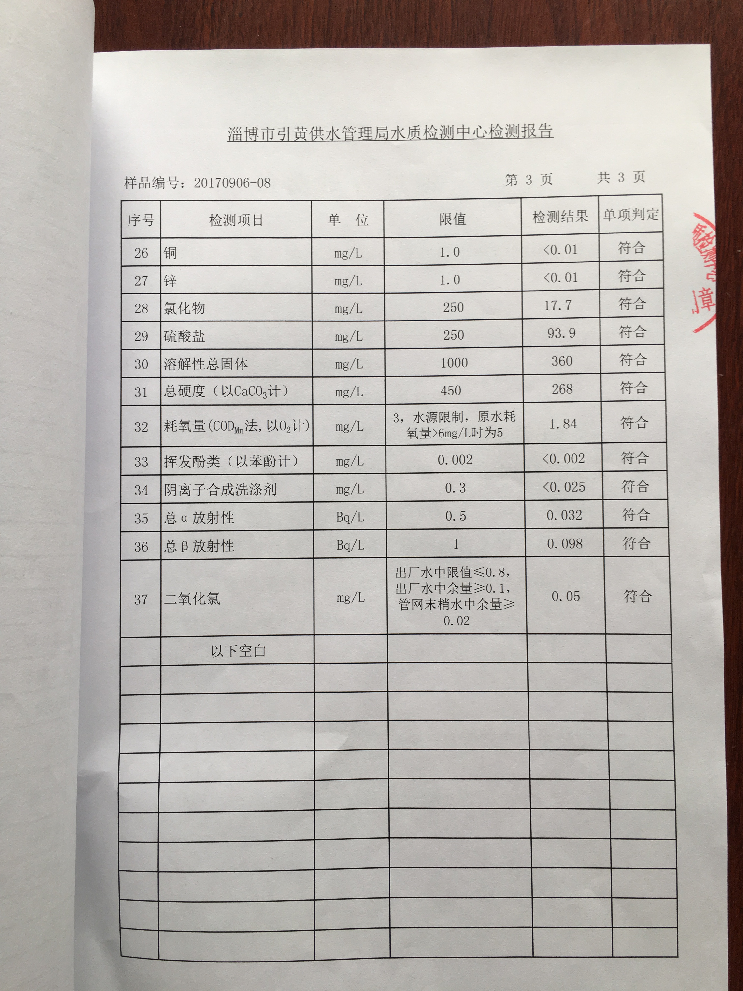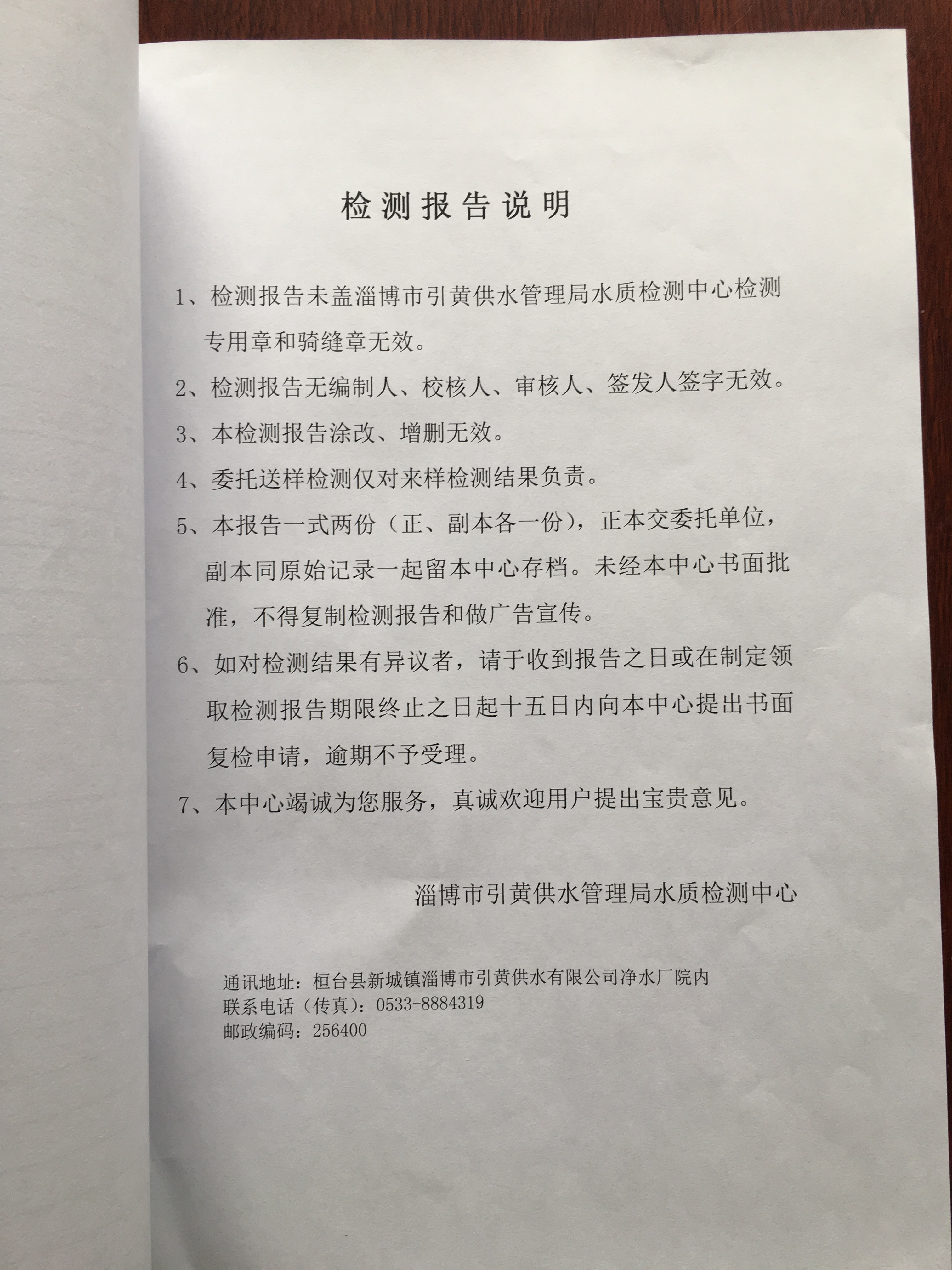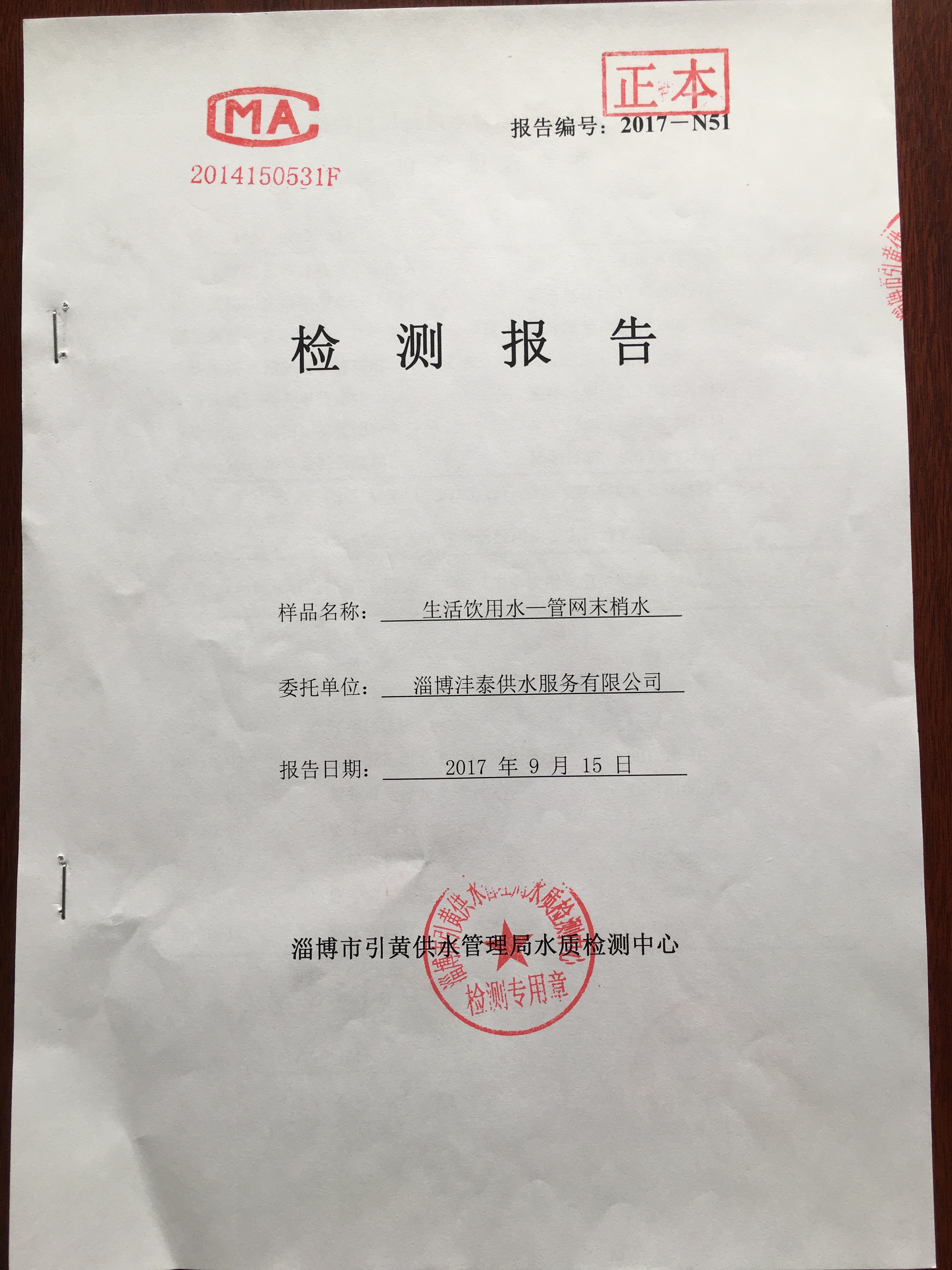 淄博灃泰供水服務有限公司管網水檢測月報表