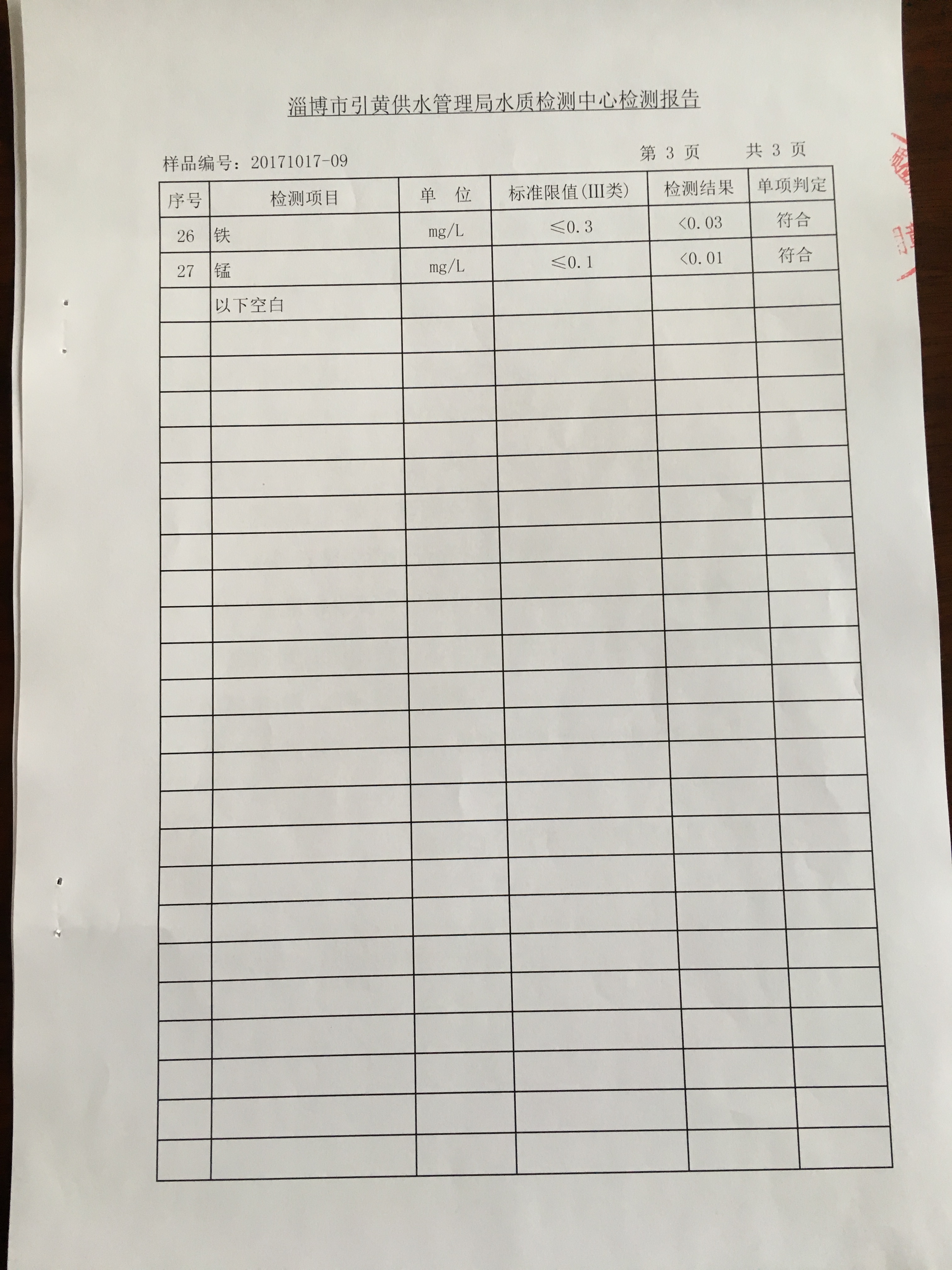 淄博灃泰供水服務有限公司地表水檢測月報表