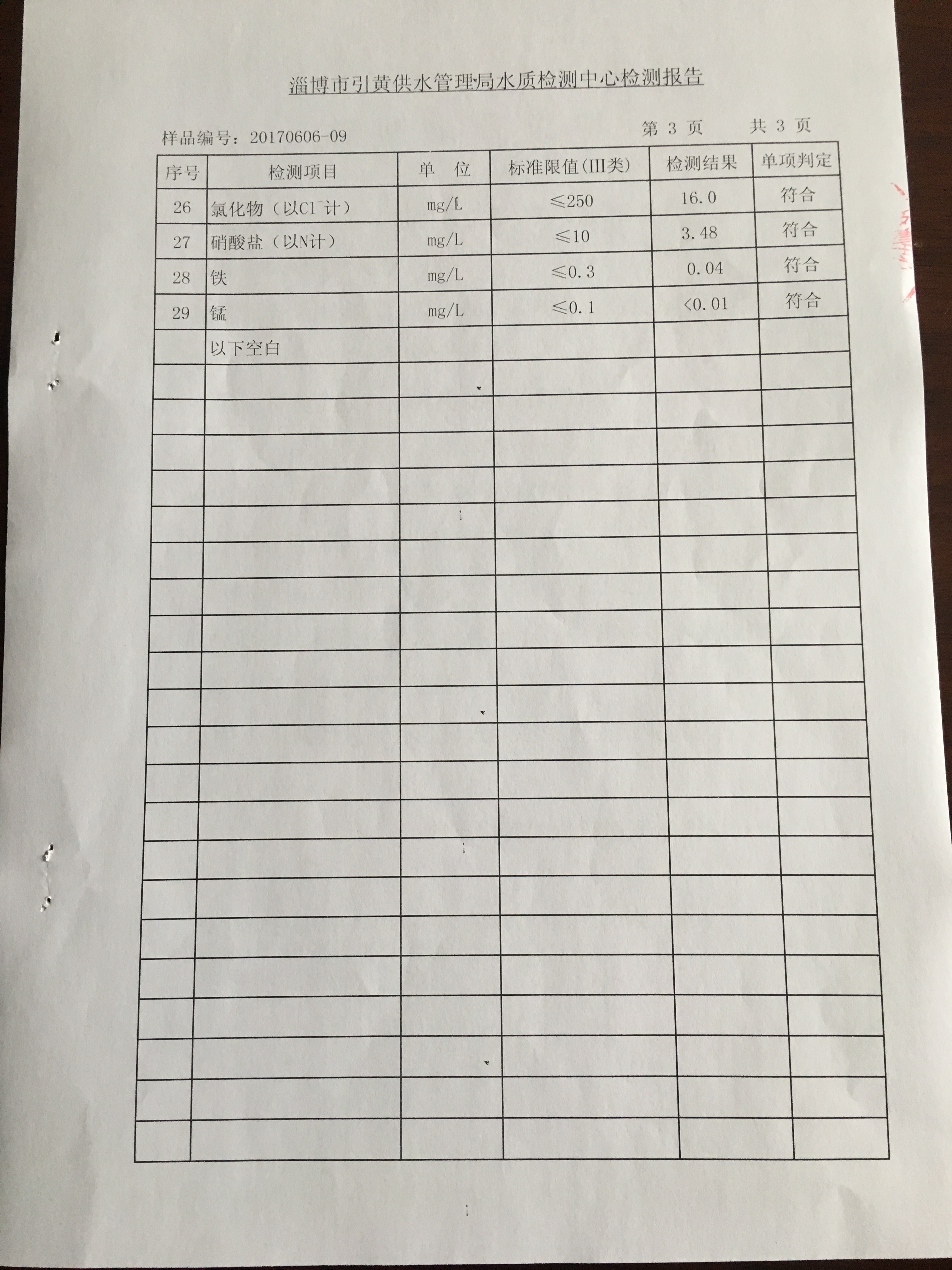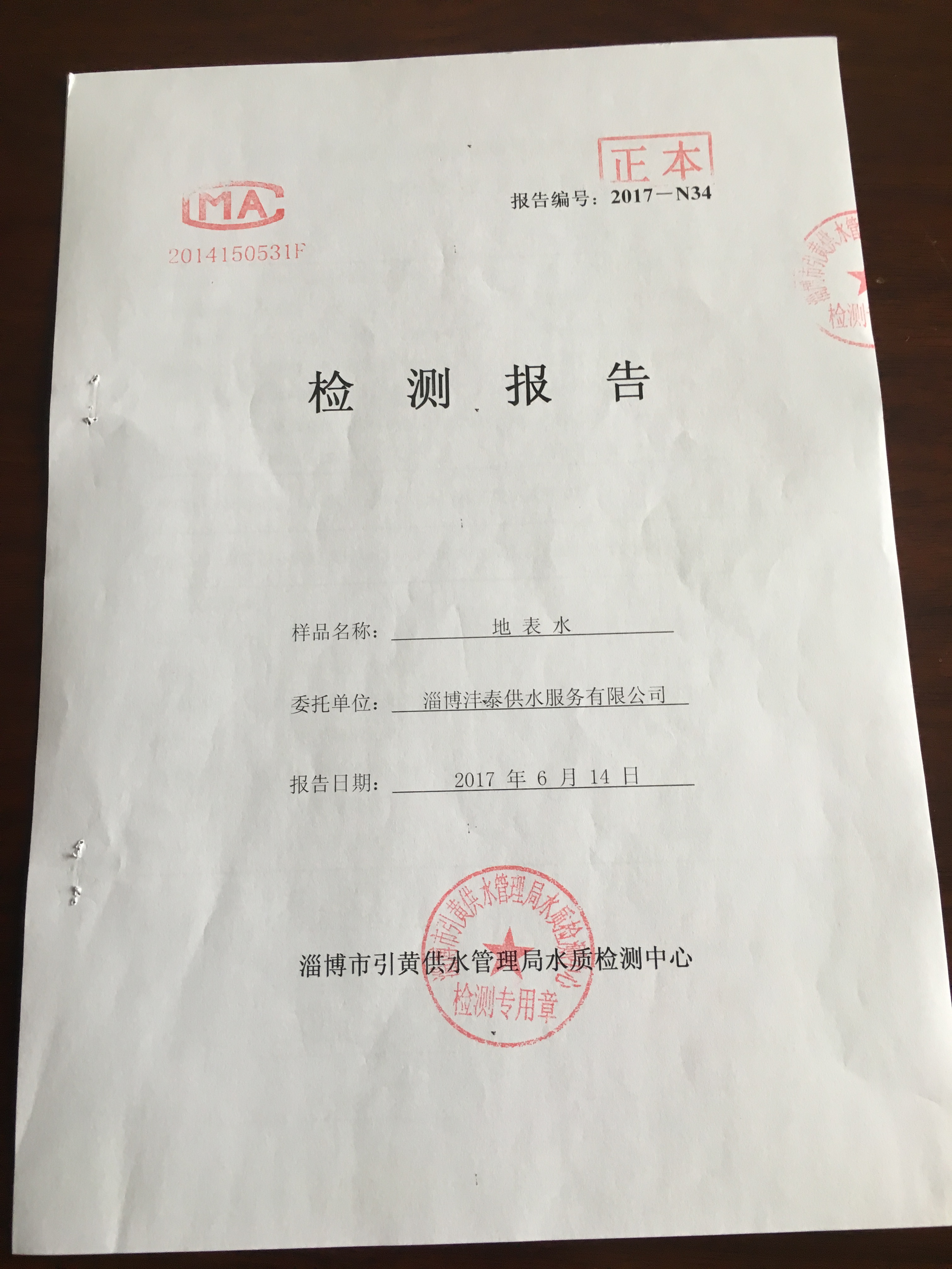 淄博灃泰供水服務有限公司地表水檢測月報表